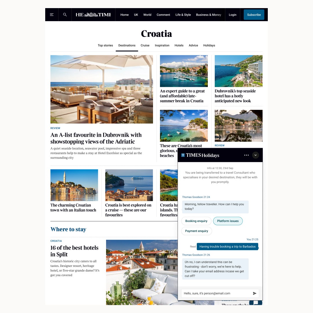 This work sat across multiple teams, as Travel & Holidays touches a wide range of concerns inside The Times: