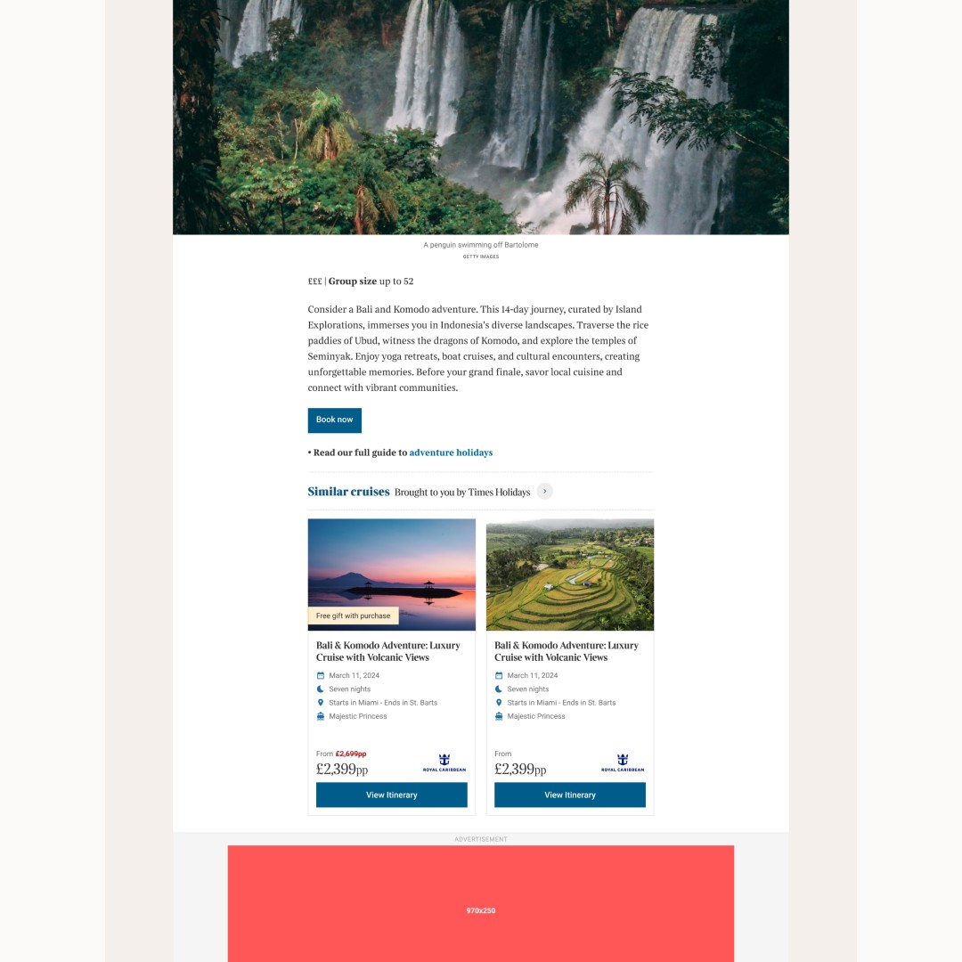The Times’ Travel & Holidays product needed to support commercial journeys without disrupting how readers experience editorial content. I joined at MVP stage, shipping the initial foundations and then iterating post-launch once real behaviour and constraints emerged.